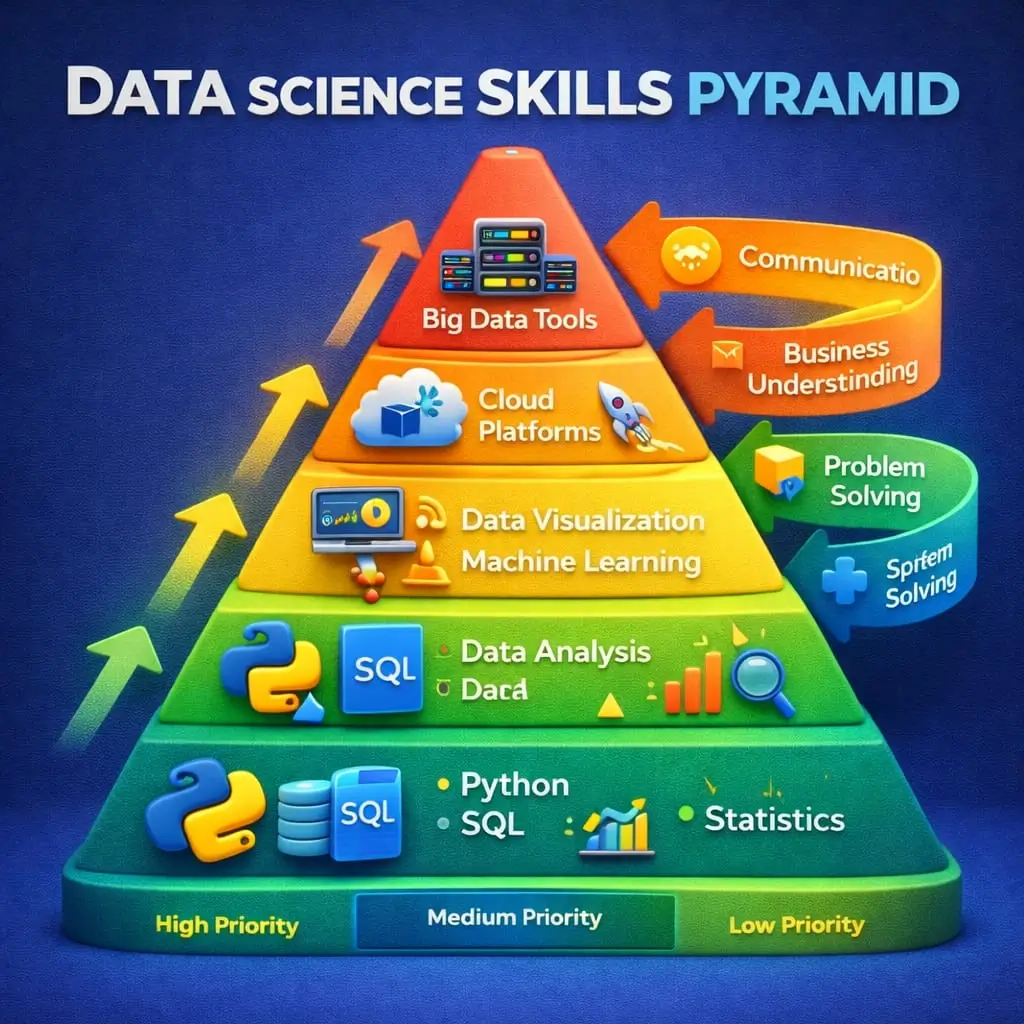 To become a successful data scientist, you need a balanced combination of technical expertise and soft skills. Many beginners make the mistake of focusing only on coding, but data science is as much about thinking and communication as it is about algorithms.